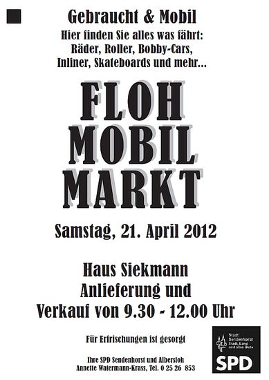 Am Samstag, 21.4.2012, gibt es wieder einen Flohmobilmarkt.