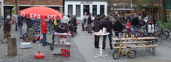 Auf dem zum vierten Mal stattfindenden Flohmobilmarkt konnte man auf dem Rathausplatz einen regen Handel mit allen möglichen Fortbewegungsmitteln erleben. Vom Bobbycar bis zum modernen Fahrrad war alles vorhanden, was das Herz begehrte. Kettcars, Inlineskates, Roller, Laufräder und vieles mehr wechselten schnell ihre Besitzer.