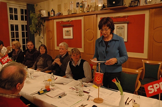 Als Gast berichtete an diesem Abend die SPD-Landtagsabgeordnete Marlies Stotz MdL aus dem Kreis Soest über die Arbeit der Landesregierung. Als Landesvorsitzende der Arbeitsgemeinschaft für Bildung ging sie vor allem auf das Thema Bildung ein, das für die Landespartei das politische Schwerpunktthema sei. „Wir müssen alle Kinder fördern und zu möglichst guten Schulabschlüssen bringen – nur so können wir die Herausforderungen der Zukunft lösen. Deshalb wollen wir im Land das längere gemeinsame Lernen voranbringen", stellte sie ihren Ausführungen voran. Die Schullandschaft ändere sich rasant im Land, 14 weitere Schulen in NRW würden 2011 zu Gemeinschaftsschulen umgewandelt. Zudem hätten über 40 Kommunen ihr Konzept bereits so weit vorbereitet, dass auch hier demnächst Anträge zu erwarten sei. Marlies Stotz machte deutlich, dass es notwendig sei, für Beste Bildung Geld in die Hand zu nehmen: „Das sind Investitionen in unsere Kinder und damit in die Zukunft.“