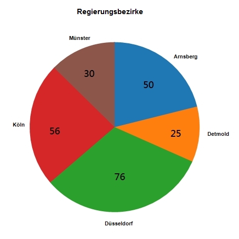 Die folgenden Grafiken zeigen die Verteilung der 237 Abgeordneten auf die einzelnen Regierungsbezirke: