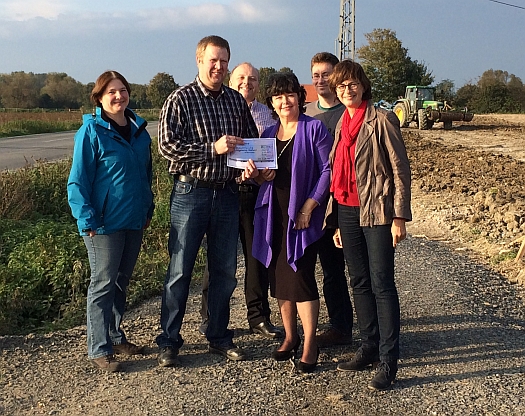 Gute Fortschritte macht der Bau des Bürgerradwegs Ahrenhorst entlang der Landesstraße L585 von Albersloh nach Drensteinfurt. Davon konnten sich Christiane Seitz-Dahlkamp, Fraktionsvorsitzende, Annette Watermann-Krass, Stadtverbandsvorsitzende, und Claudia Jeiler, Ratsmitglied, bei einem Treffen mit Helmut Hackenesch und Heiko Bröckelmann vom Vorstand des Vereins „Bürgerradweg Ahrenhorst" überzeugen.